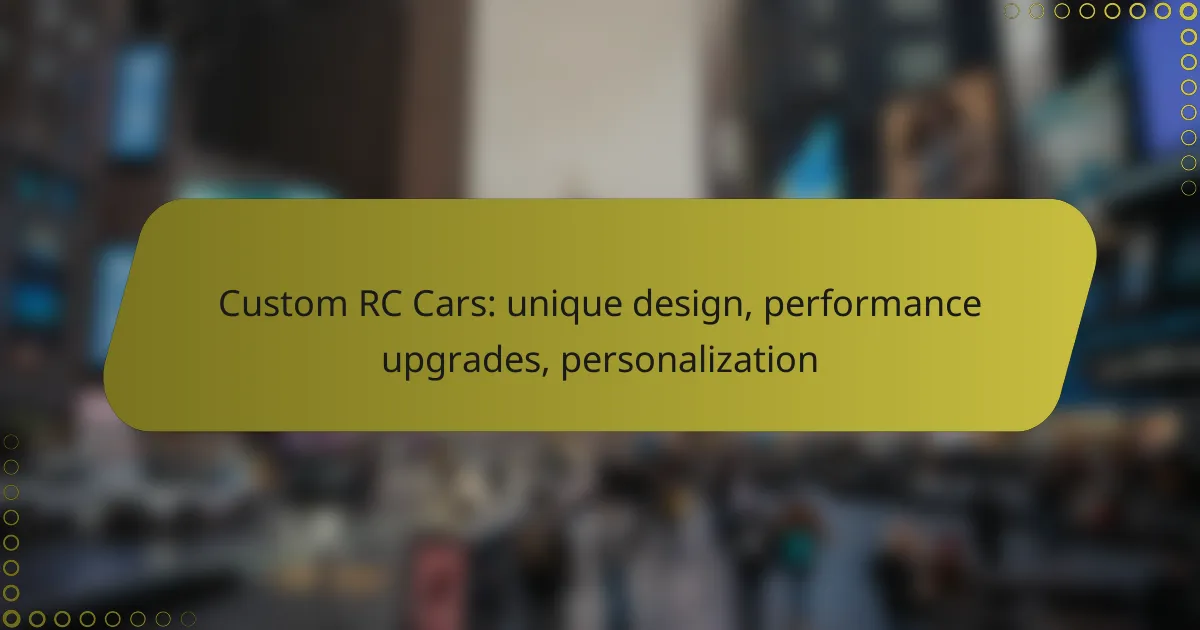Personalizing your custom RC car involves selecting unique body styles, colors, and various performance upgrades that reflect your preferences. By focusing on aesthetics and functionality, you can create a vehicle that stands out and performs better on the track.