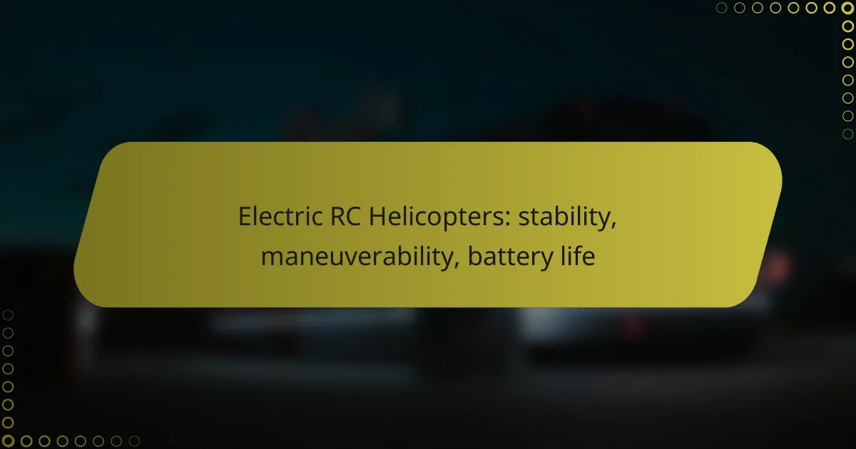 Electric RC helicopters offer a unique blend of stability, maneuverability, and battery life that can significantly enhance the flying experience. Stability is influenced by design and technology, while maneuverability varies with control systems and weight, allowing for agile flight patterns. Battery life typically ranges from 5 to 15 minutes, depending on the model and conditions, impacting how long pilots can enjoy their flights.